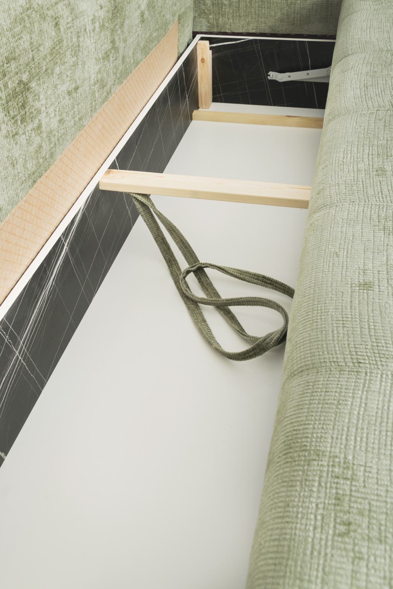Kanapa Caro jest to mebel na konstrukcji tak zwanej DL. Kiedy uniesiemy siedzisko będziemy mieli dostęp do pojemnika na pościel, natomiast gdy położymy oparcie uzyskamy większą powierzchnię spania. Całość wykonana jest z wysokiej jakości materiałów, ramie drewnianej, sprężynie typu bonel oraz piance polurietanowej. Boki jak i poduchy zostały estetycznie przeszyte w kształt "dzwonki".Do całości można zastosować nóżki metalowe lub drewniane.