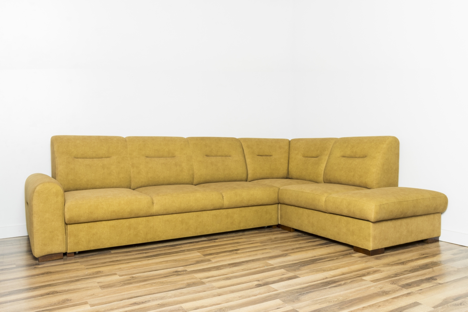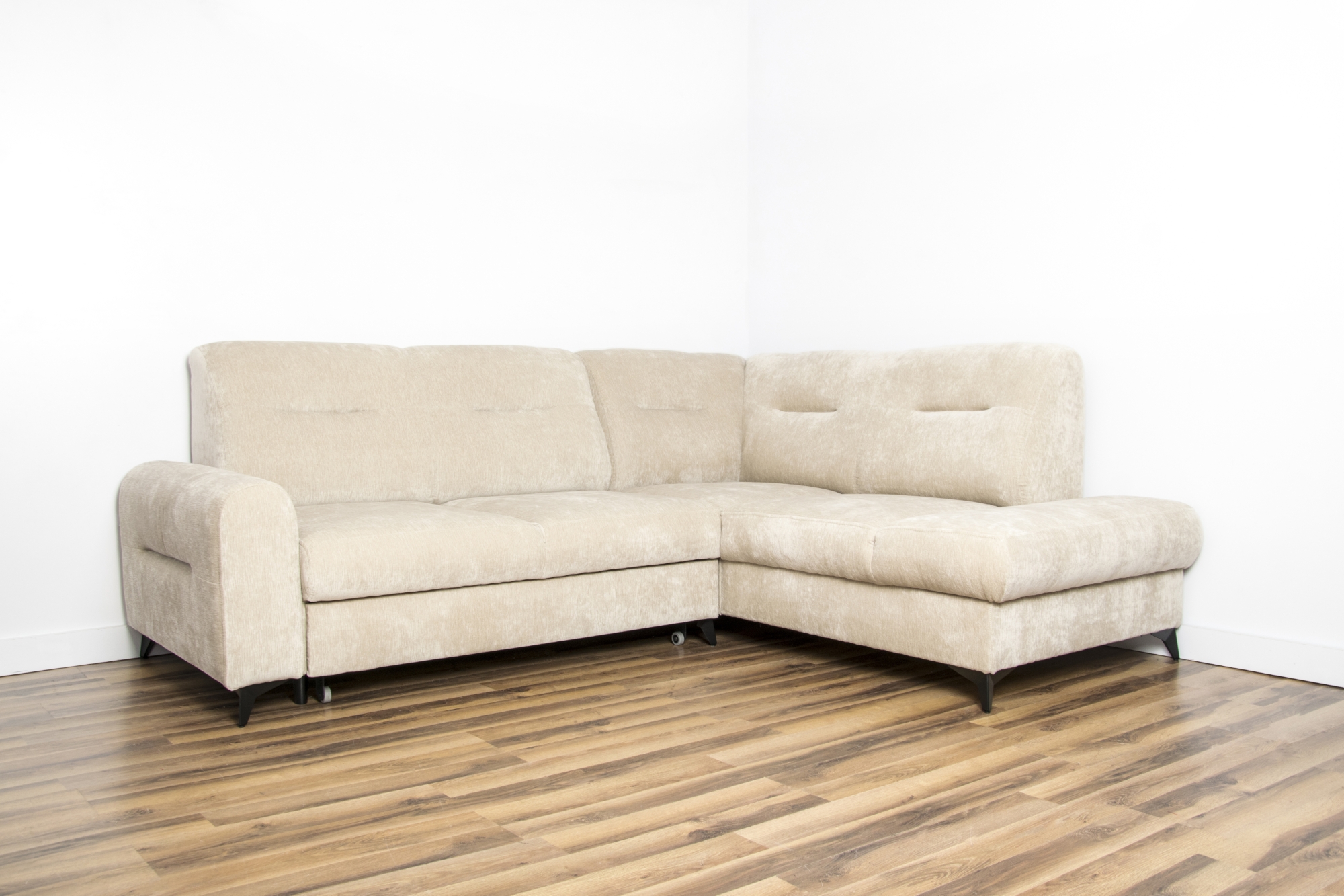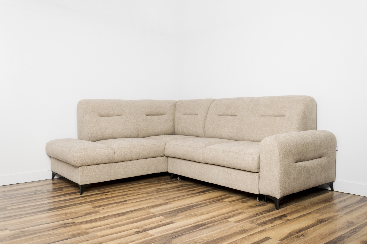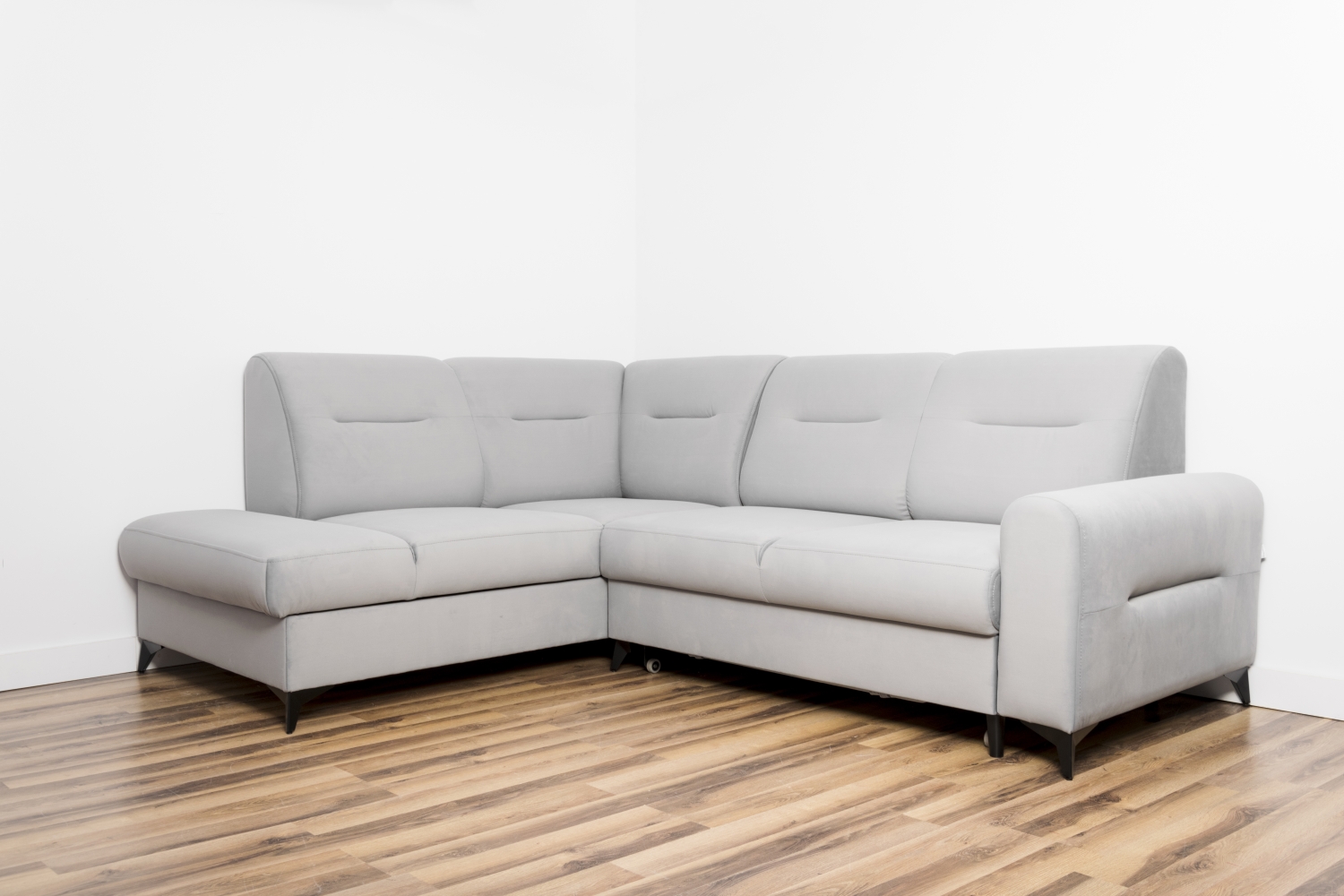 Narożnik Bergamo jest to zestaw modułowy co oznacza, że możemy dowolnie go konfigurować i łączyć poszczególne elementy na wymiar jaki nam odpowiada. Jego prosty fason z obłymi kształtami na przodzie siedziska jak i na oparciu sprawia, że posiadamy delikatny prosty wzór, a zarazem elegancki. Na oparciu zostały wykonane pozione wciągnięcia. Cały narożik stoi na wysokich metalowych nogach. Oczywiście znajdziemy tutaj funcję spania oraz pojemnik na pościel. Do produkcji używane są wysokiej jakości materiały. Stelaż wykonany jest z drewna, natomiast wypełnienie to pianka wysokoelastyczna HR oraz sprężyny faliste.