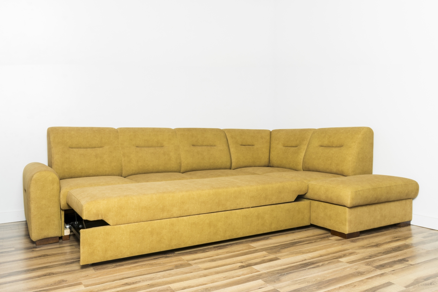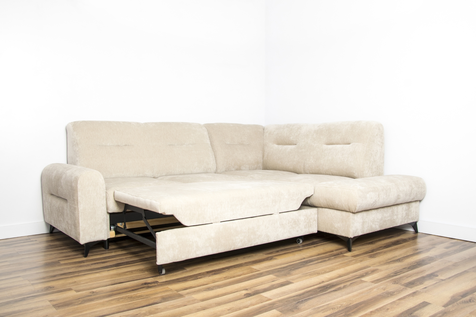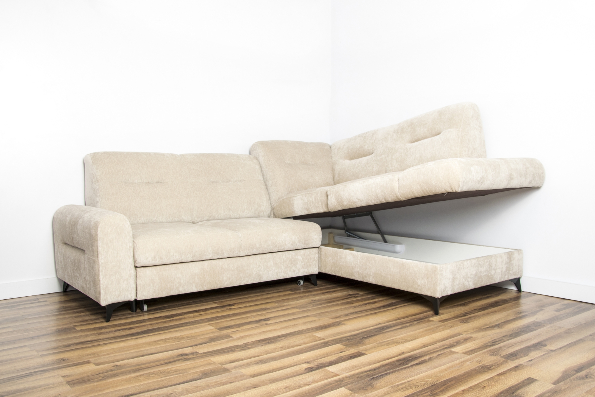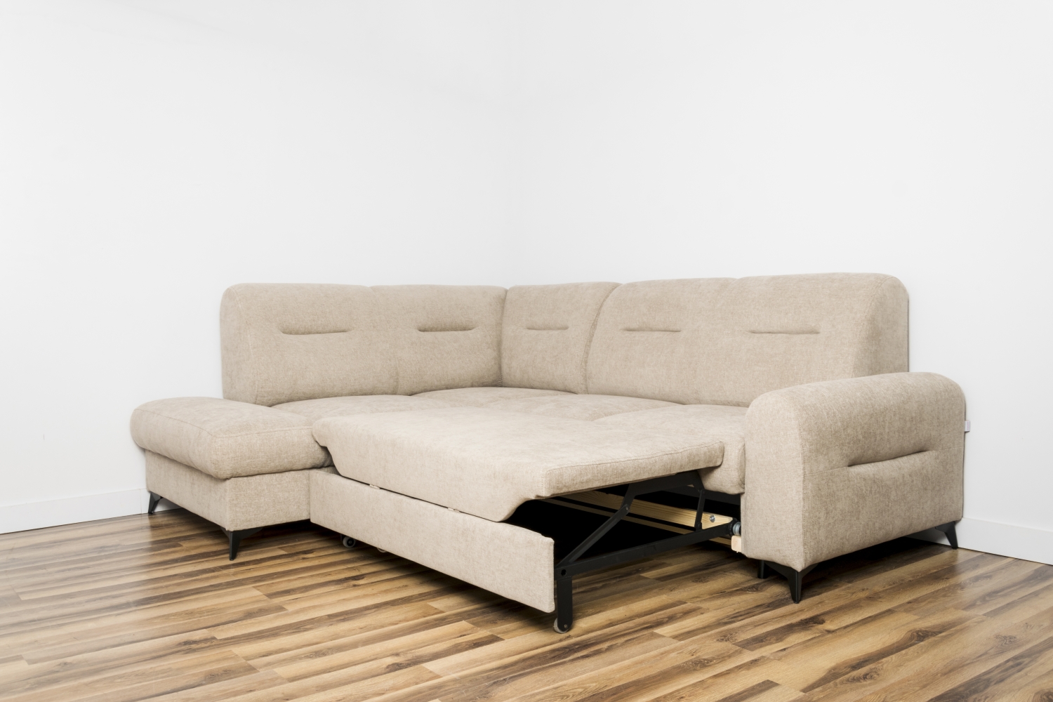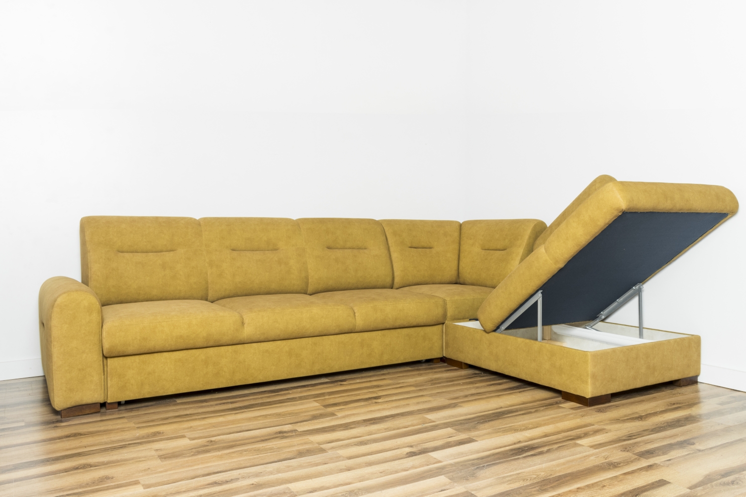 Narożnik Bergamo jest to zestaw modułowy co oznacza, że możemy dowolnie go konfigurować i łączyć poszczególne elementy na wymiar jaki nam odpowiada. Jego prosty fason z obłymi kształtami na przodzie siedziska jak i na oparciu sprawia, że posiadamy delikatny prosty wzór, a zarazem elegancki. Na oparciu zostały wykonane pozione wciągnięcia. Cały narożik stoi na wysokich metalowych nogach. Oczywiście znajdziemy tutaj funcję spania oraz pojemnik na pościel. Do produkcji używane są wysokiej jakości materiały. Stelaż wykonany jest z drewna, natomiast wypełnienie to pianka wysokoelastyczna HR oraz sprężyny faliste.