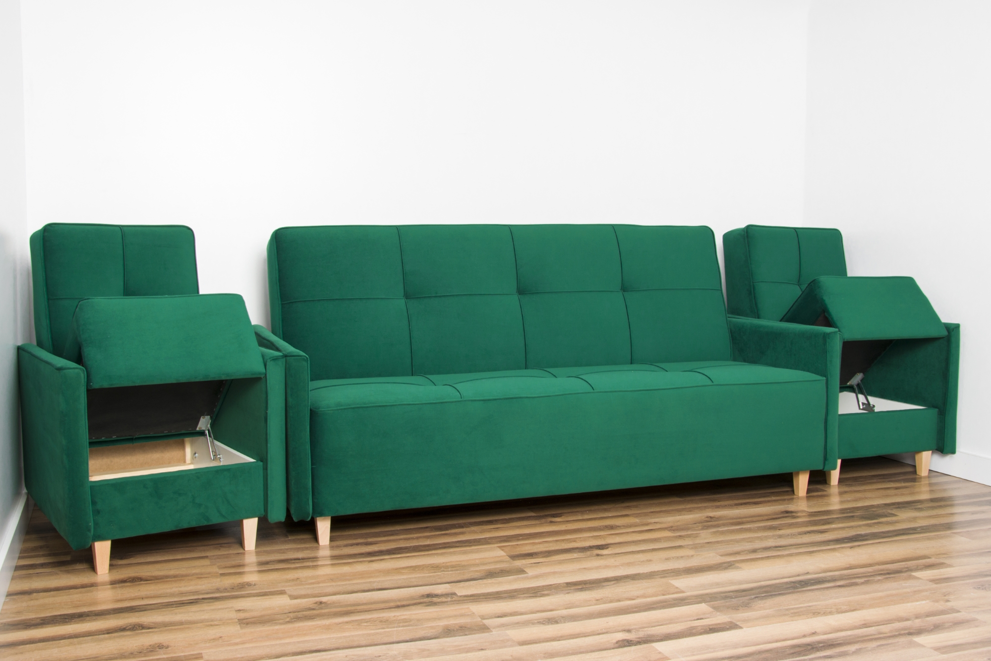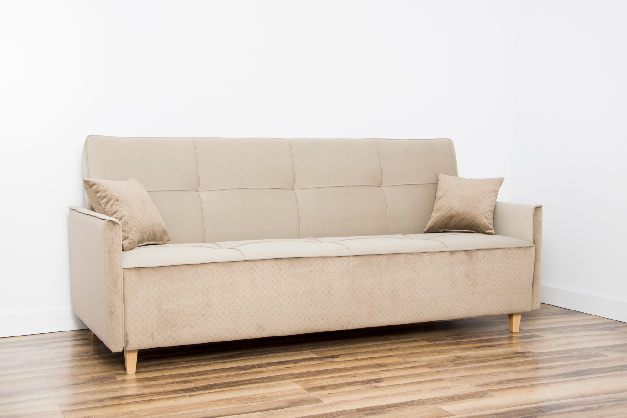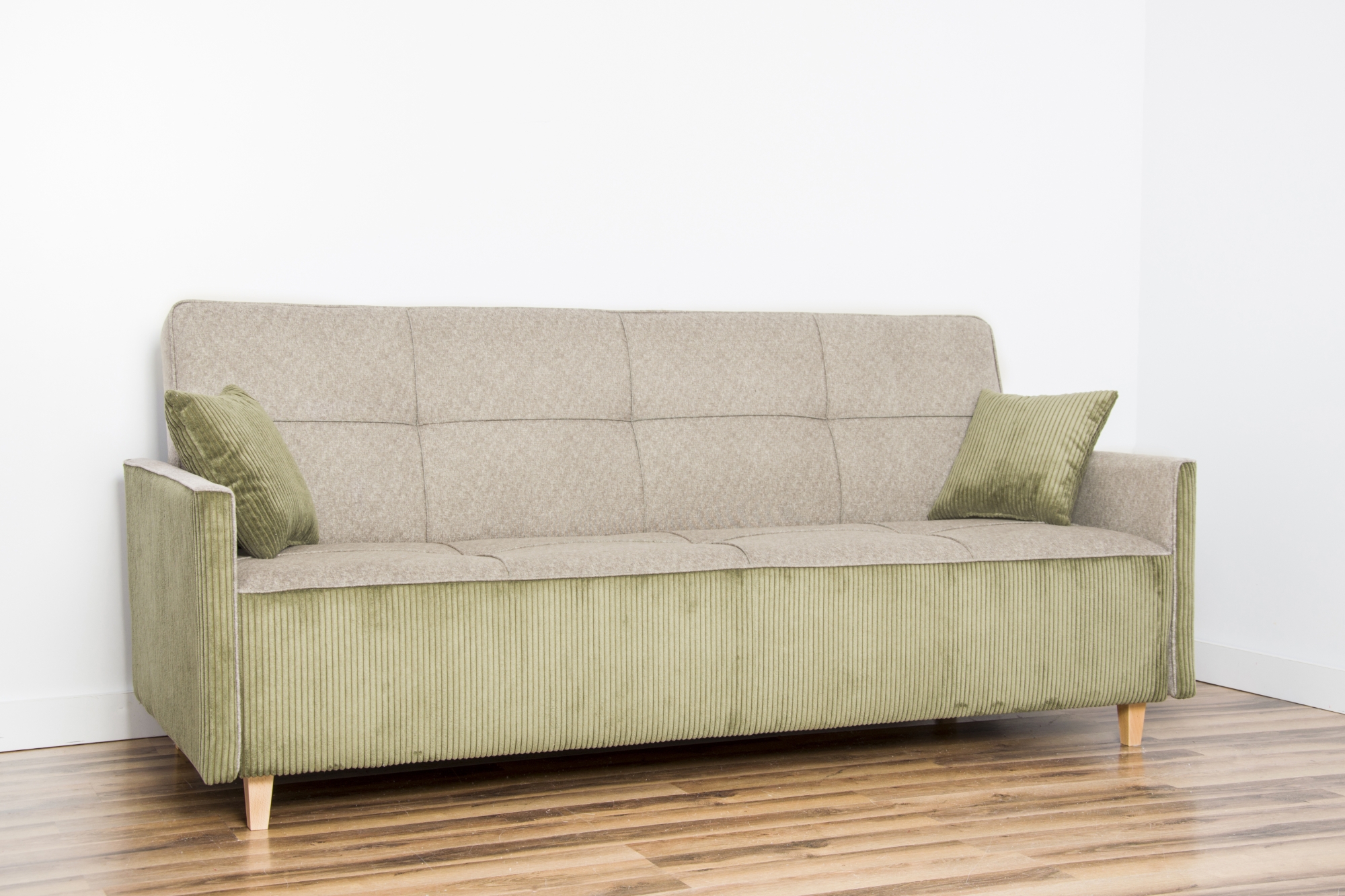 Solidna konstrukcja: Wersalka Marcel opiera się na ramach drewnianych, co gwarantuje jej trwałość i stabilność przez wiele lat użytkowania.
